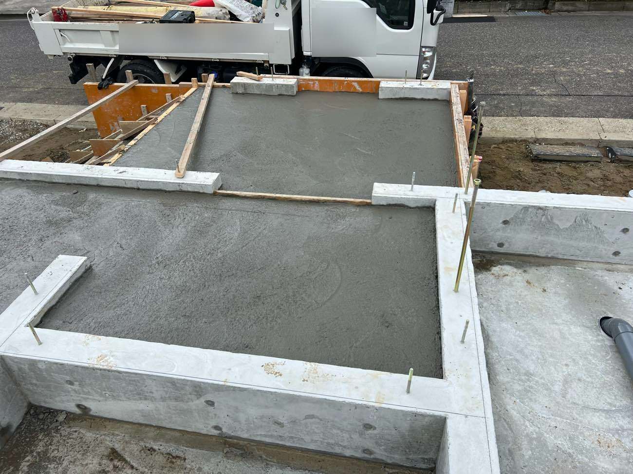 先日、基礎の配筋検査を終え、コンクリートを流し込む、基礎工事を行いました。