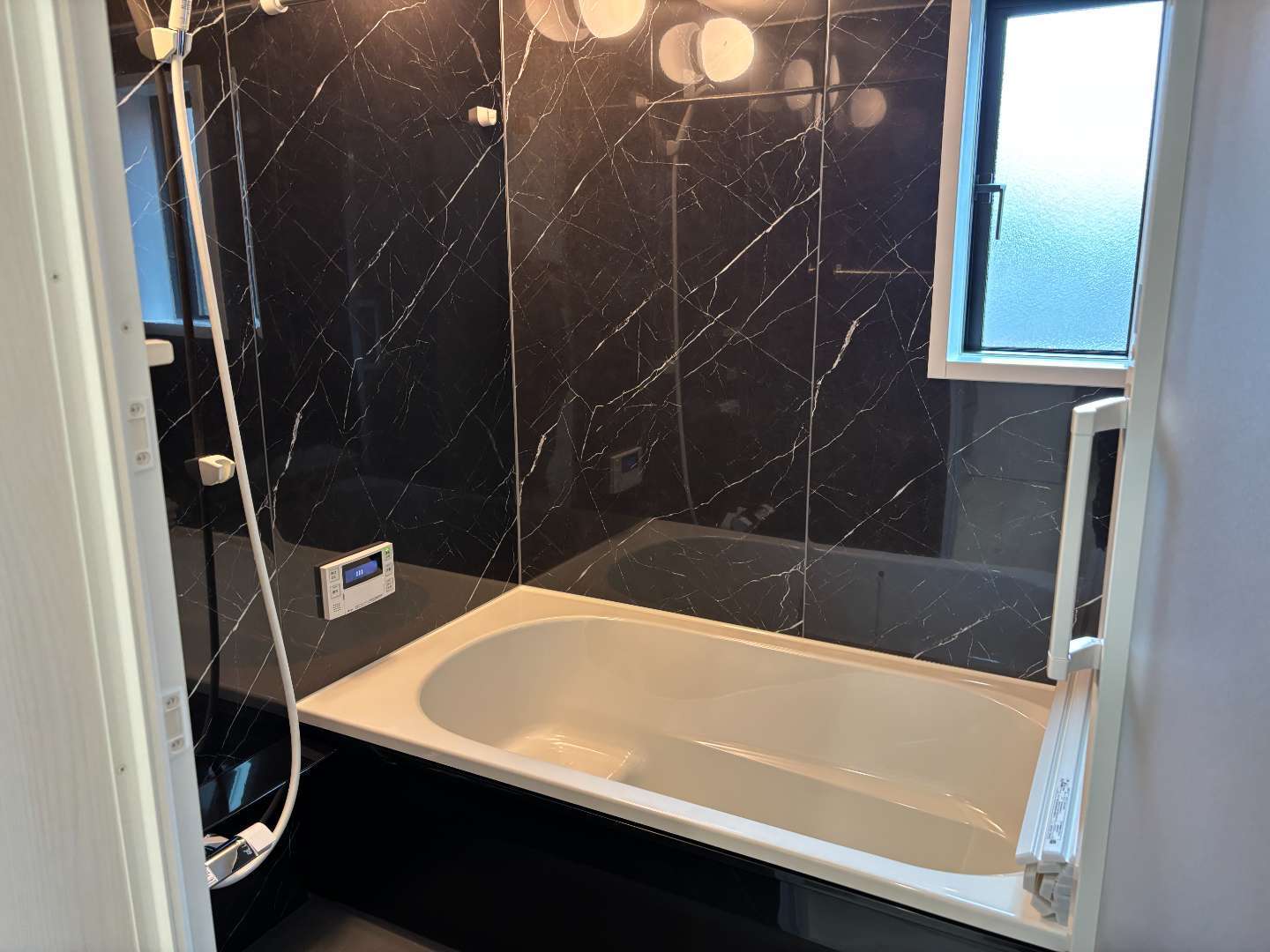 お部屋が白を基調としているので、浴室の黒が映えます。