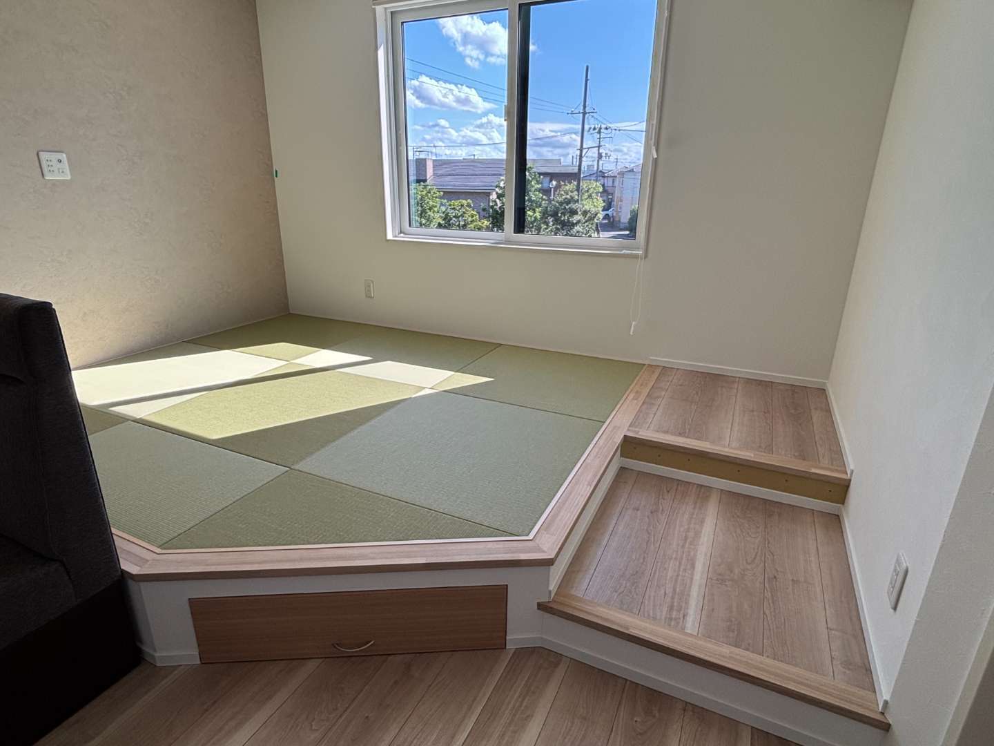 小上がりの床下には引き出しが。ここに収納スペースがあると何かと重宝します♪