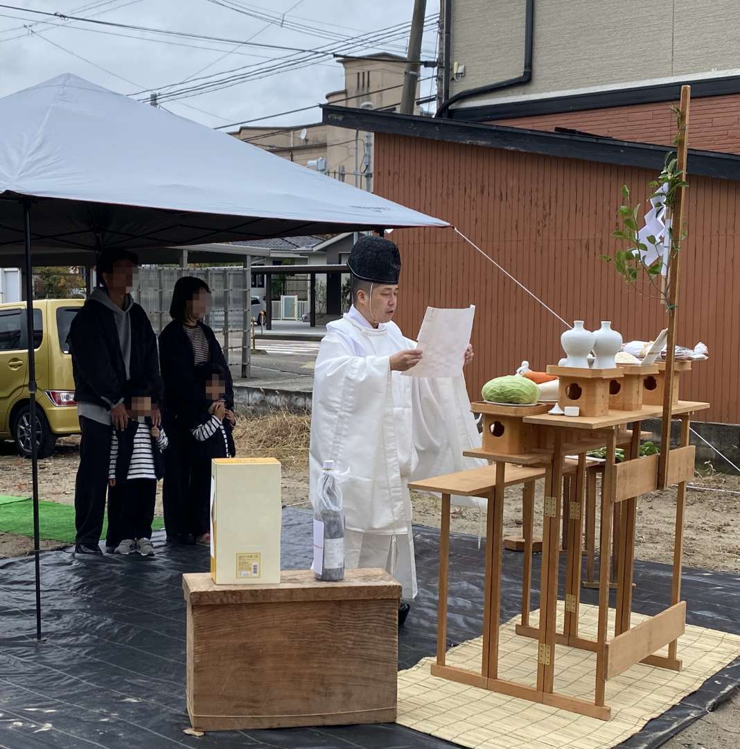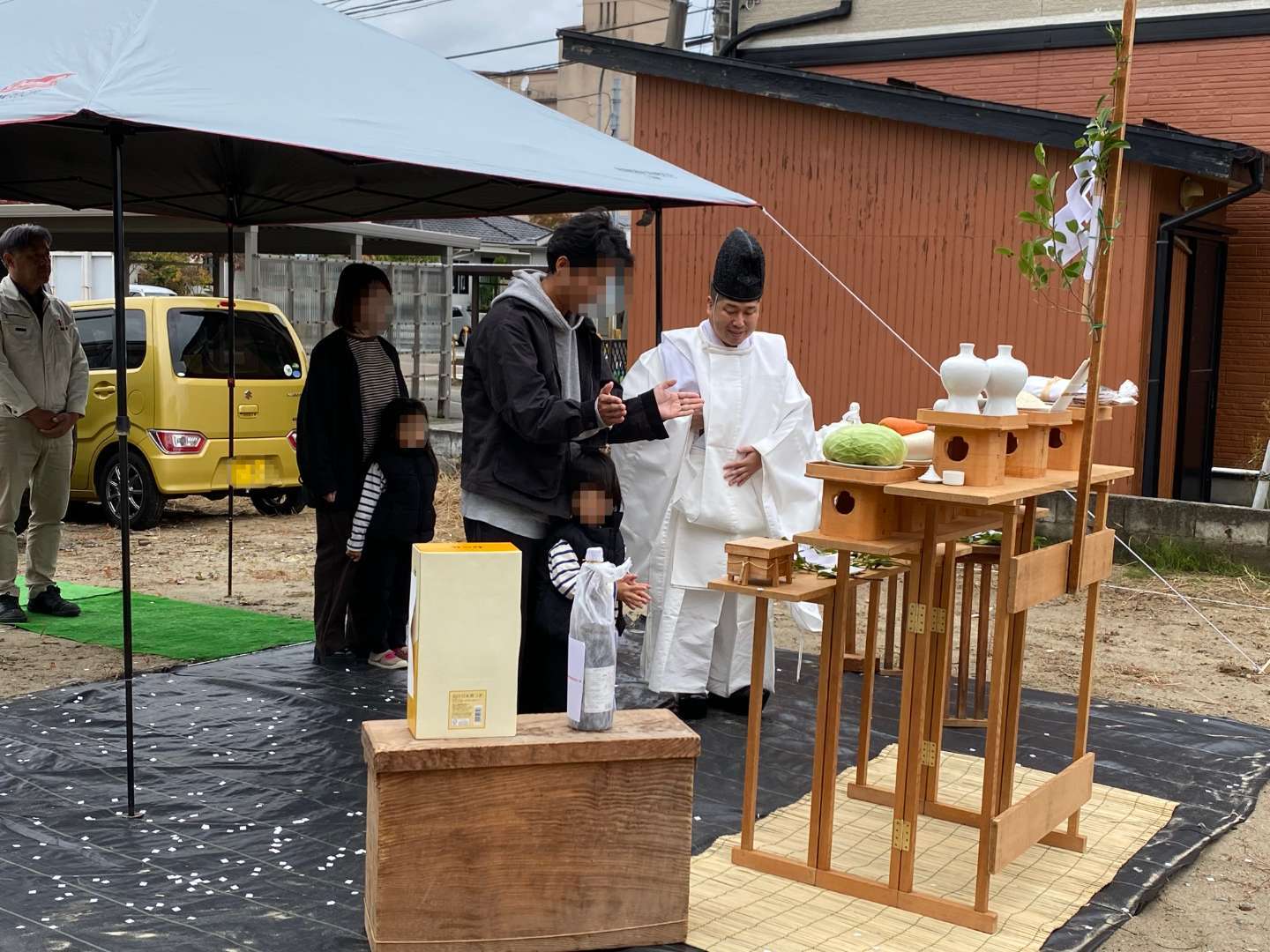 地鎮祭とは、土地の神様にお家を建てる際、工事の無事や安全、ご家族の繁栄を願う儀式のことです。
