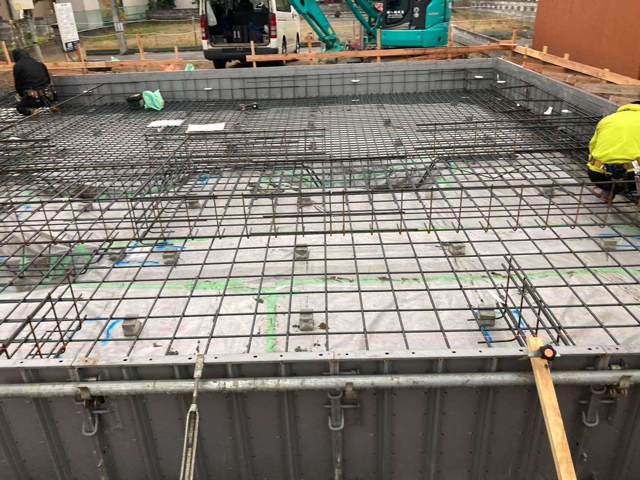 配筋工事中。無事に配筋検査、終了いたしました!!