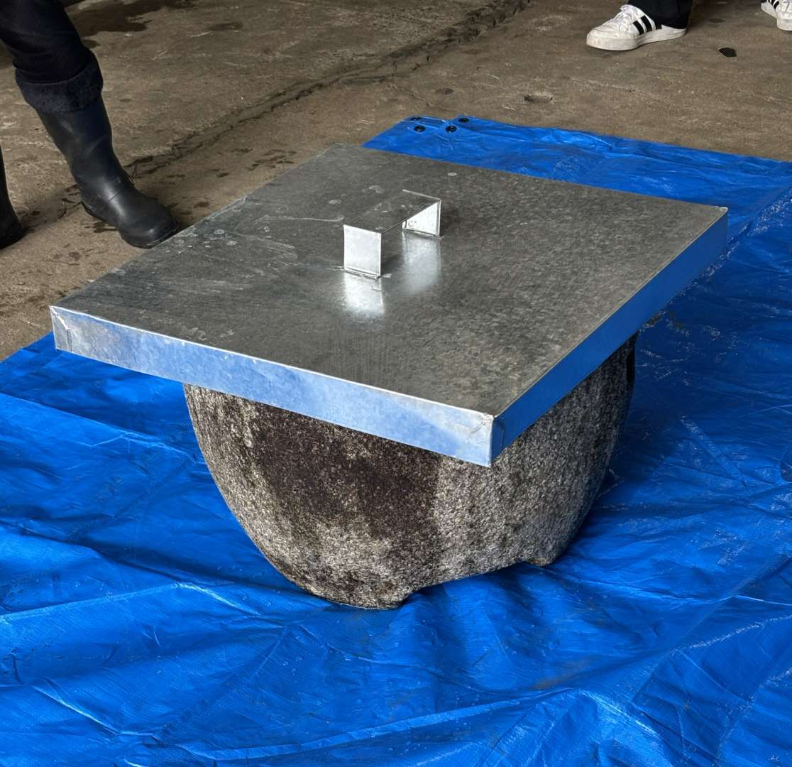 蓋は弊社社員の特製です♪石臼は100㎏超えるとか‼