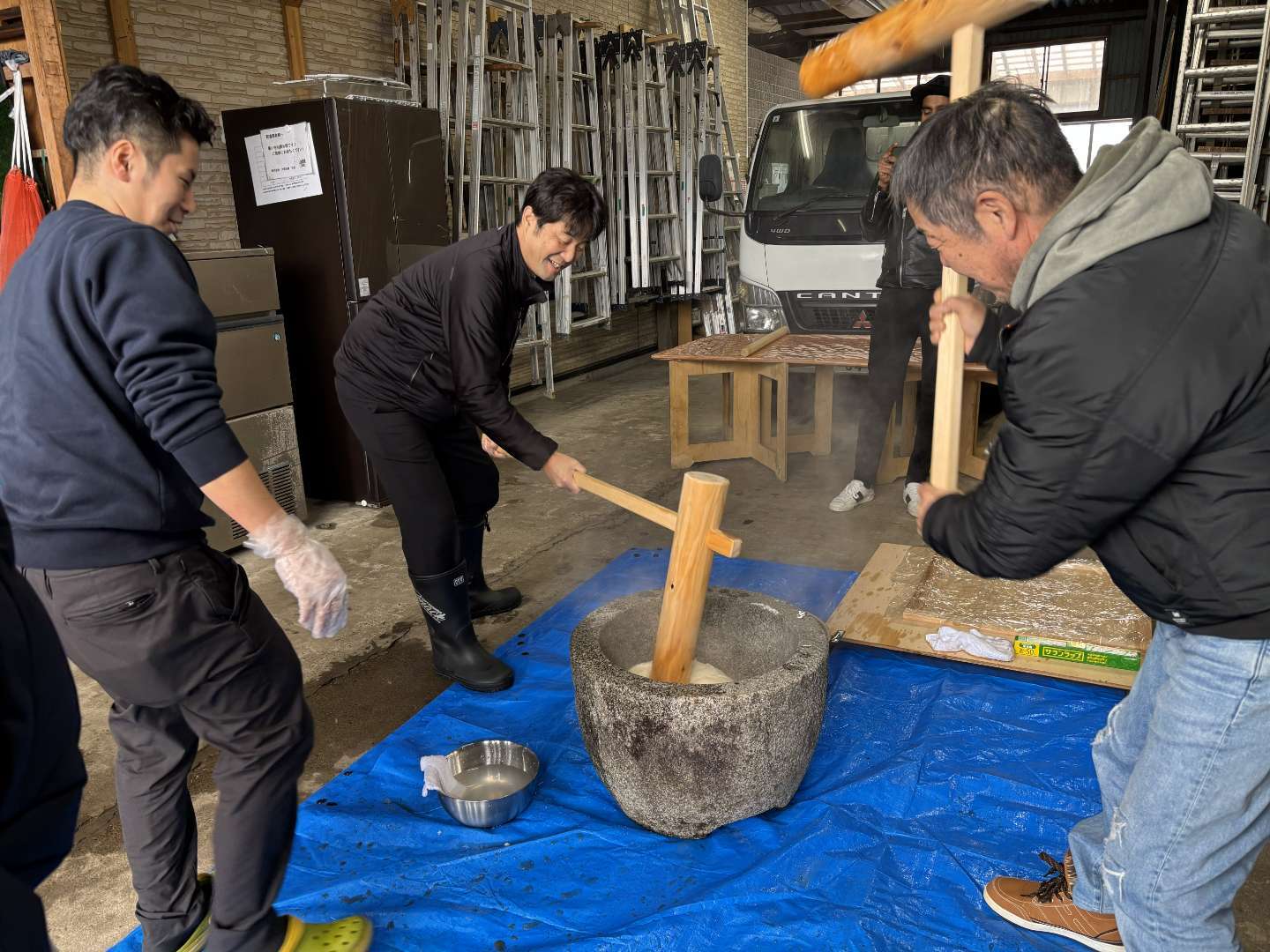 会社に戻ったら餅つき&食事会です!
