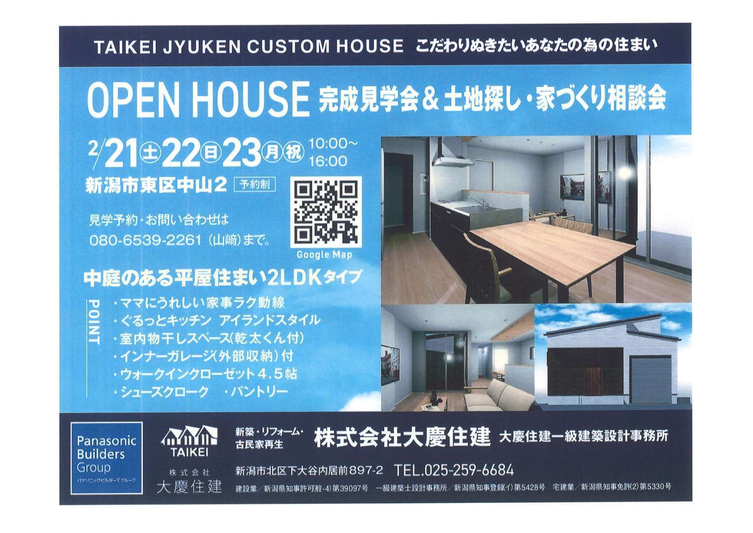 この度、2/21(土)~2/23(月・祝)の3日間、オープンハウスを開催いたします!